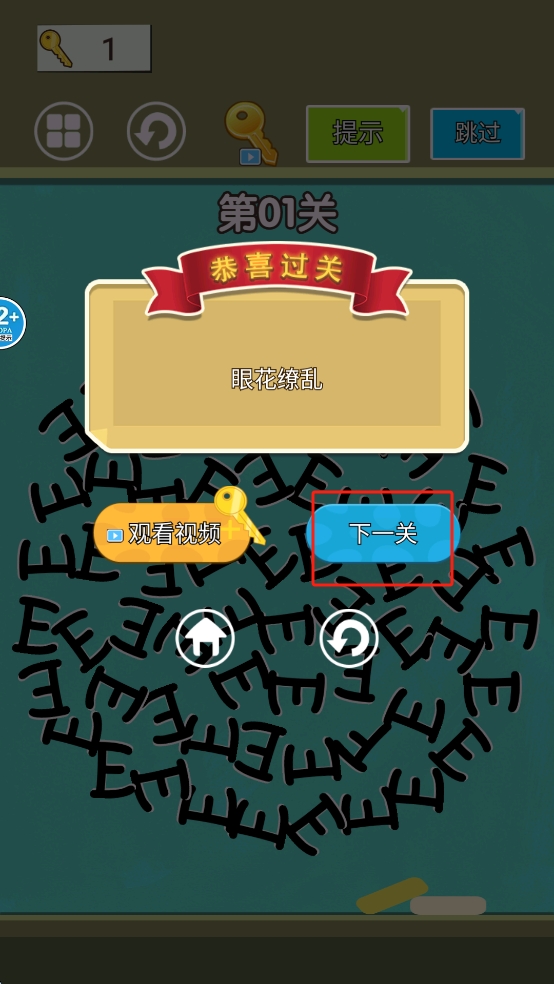 4、通过关卡后点击“下一关”继续游戏。