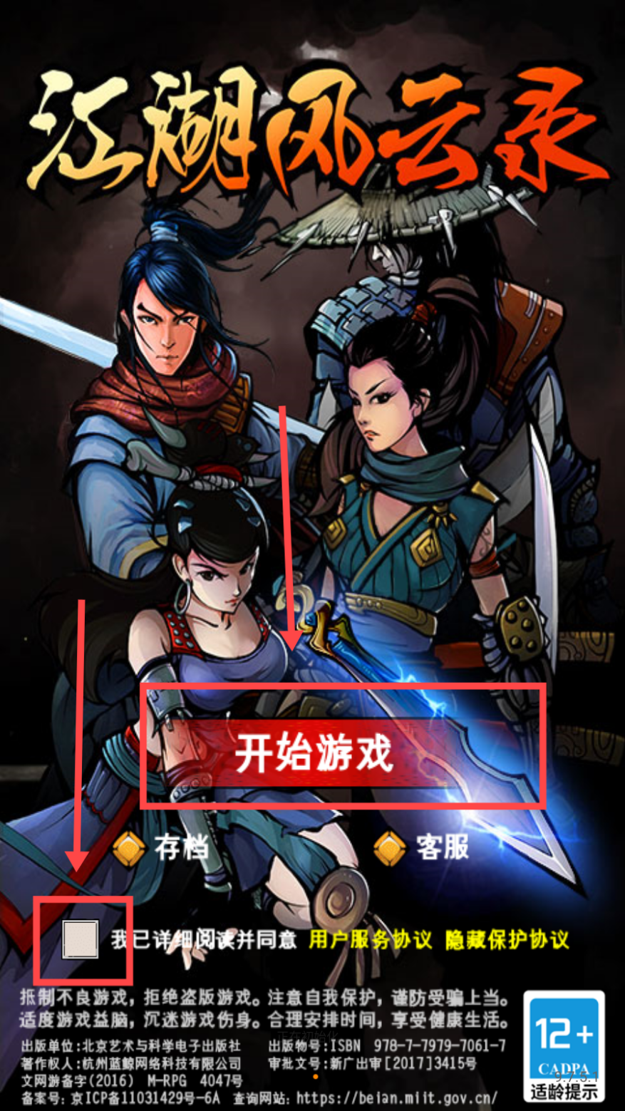 2、勾选【我已详细阅读并同意】后,点击【开始游戏】。