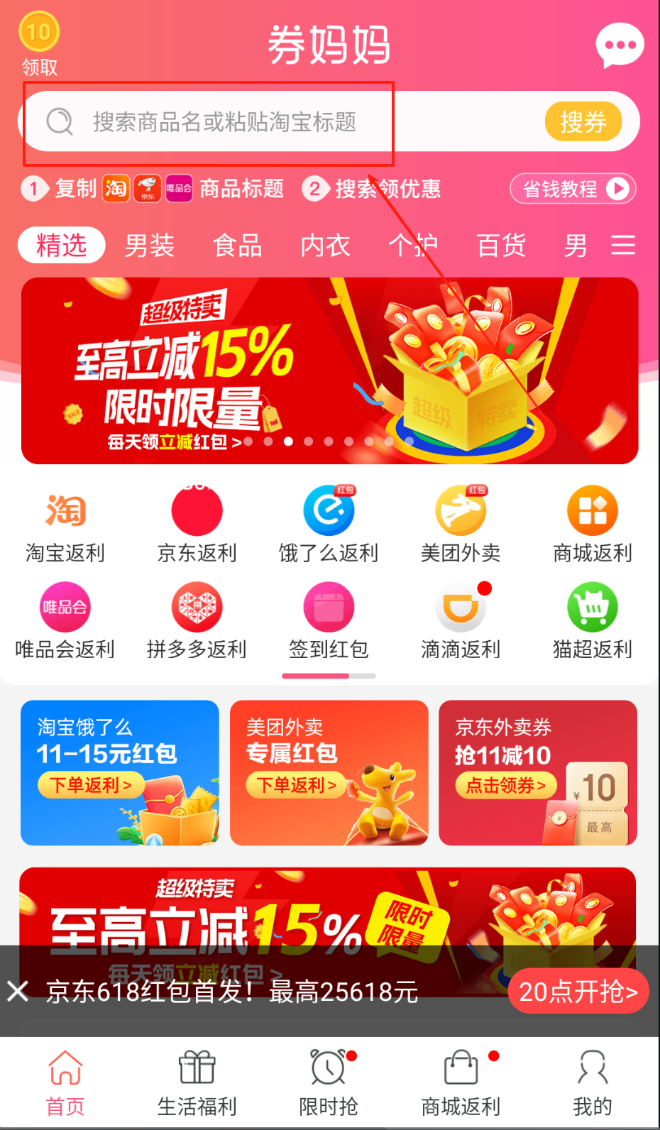 券妈妈优惠券提供电商平台隐藏优惠券搜索功能,用户可获取商品返利与金币奖励。每日签到完成任务可兑换现金红包,限时抢购专区实时更新折扣商品,覆盖衣食住行全品类优惠需求。通过精准搜索与智能推荐帮助用户降低购物成本,实现高性价比消费体验。