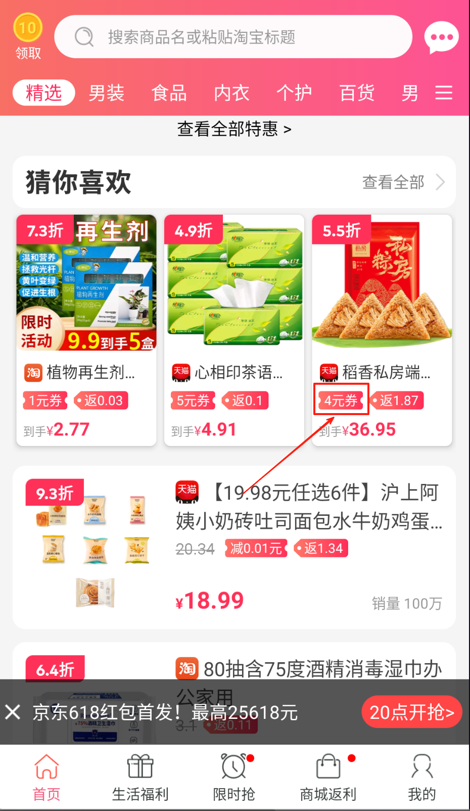 3、复合型省钱结构,构建独立返利商城入口打通品牌特惠通道,在常规满减促销基础上叠加阶梯式返利规则,形成优惠券抵扣与现金回馈双重叠加的消费模型。