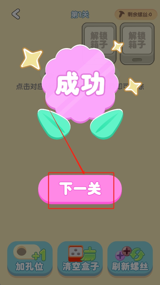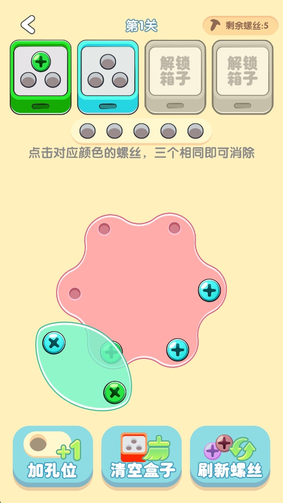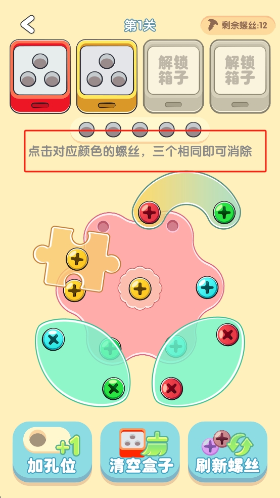 3、点击对应颜色的螺丝,三个相同即可消除。