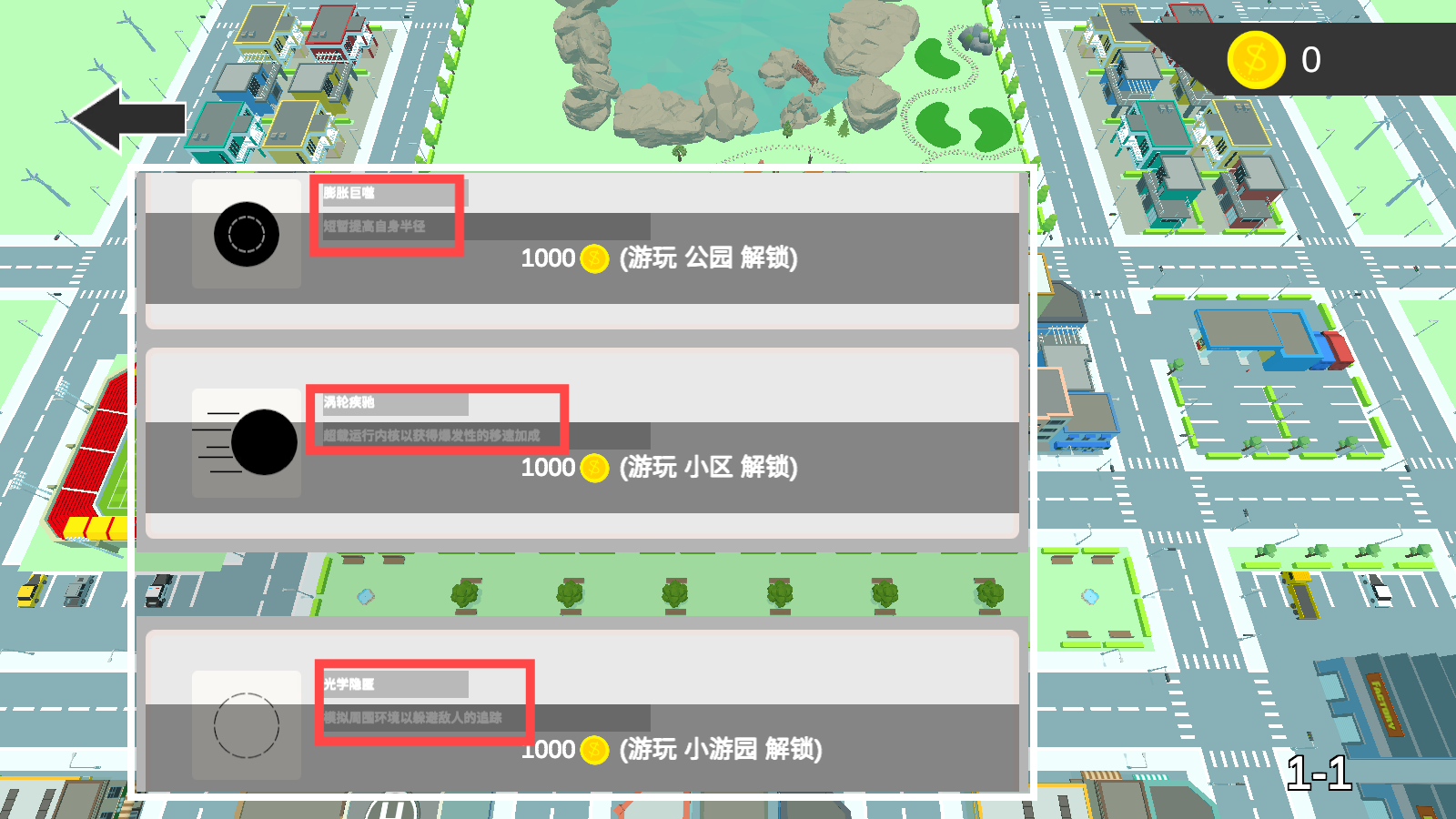 2、优先解锁技能,可通过游玩对应区域来解锁,去【小游园】解锁【光学隐匿】躲避敌人追踪。