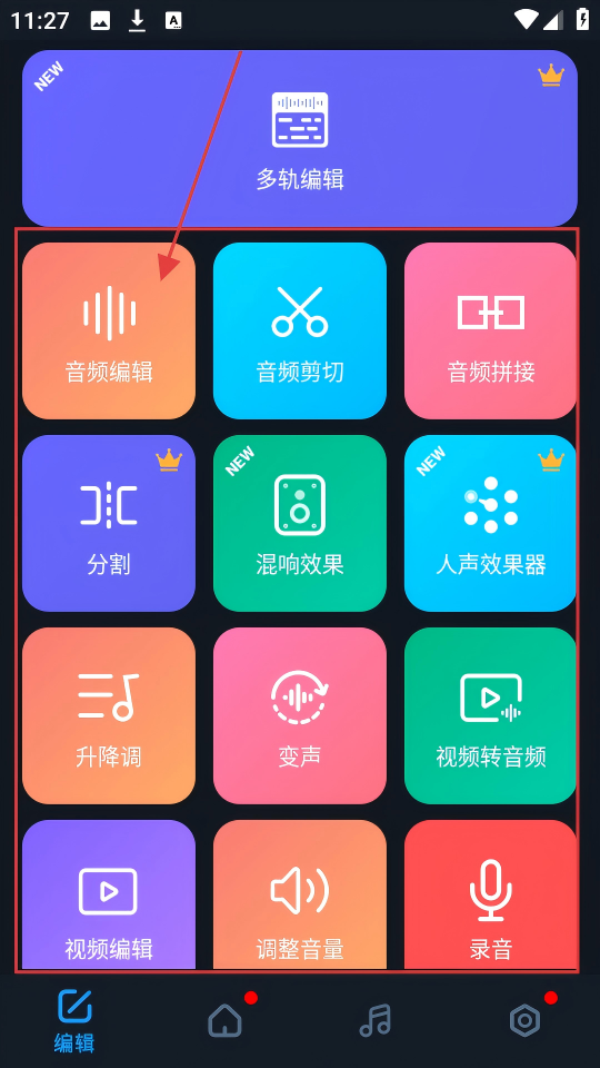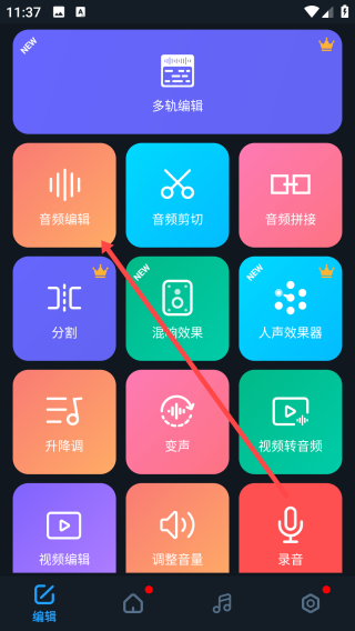 1、编辑页面有【音频编辑】功能,点击它能进入音频编辑流程,开启音频创作超有趣。