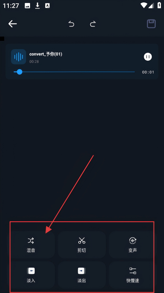 3、音频编辑界面有【混音】【剪切】等功能,根据需求选,能打造专属音频效果。