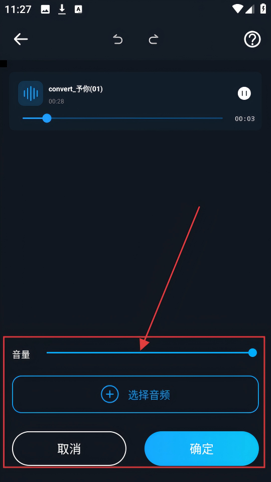 4、调整好音频后,可调节音量,还能添加其他音频,最后点击【确定】完成编辑。