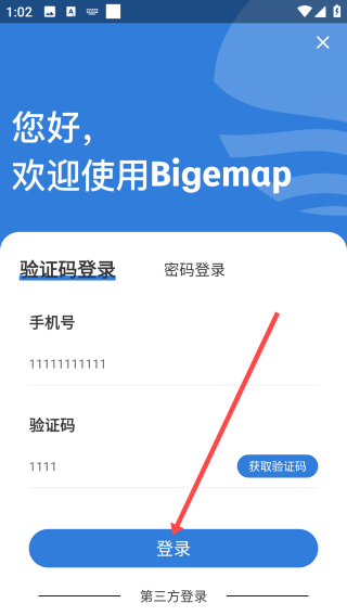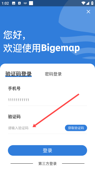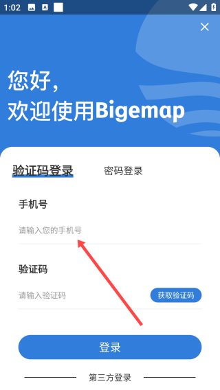 1、打开bigemap(比格图)高清卫星地图,点击【请输入手机号】。