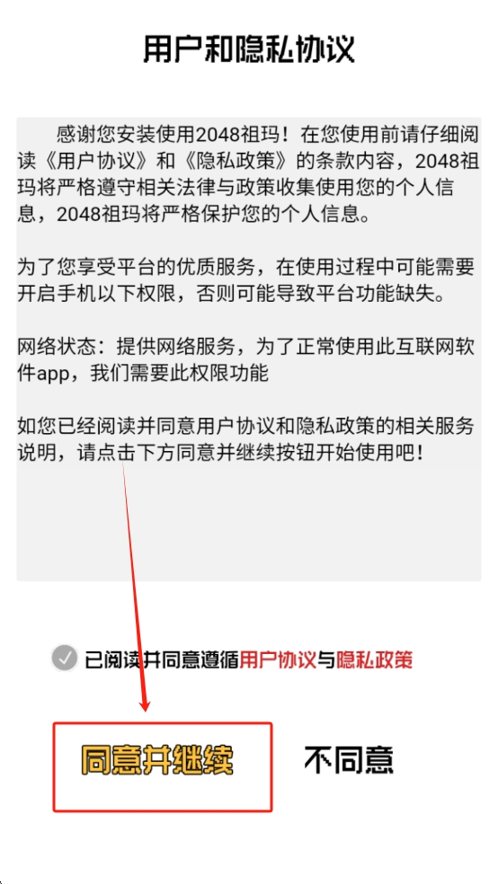1、点击“同意并继续”以接受用户协议和隐私政策。