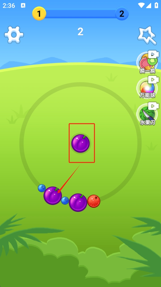 3、在游戏界面中,点击紫色球以发射并匹配相同颜色的球。
