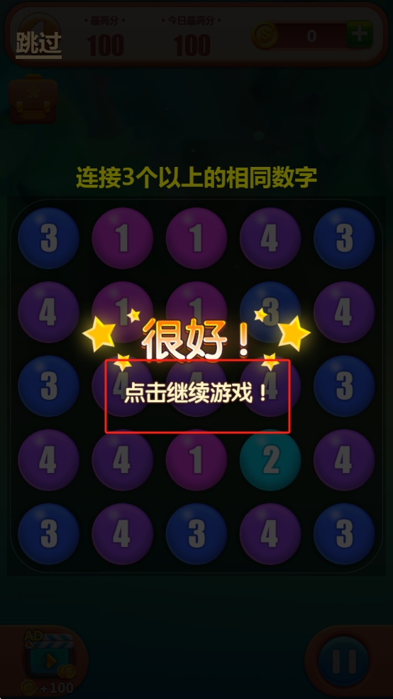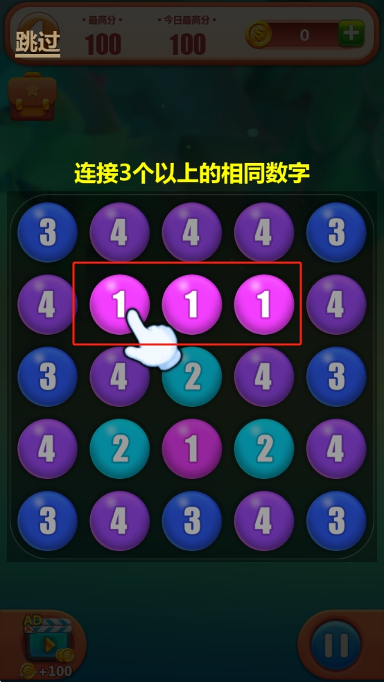 1、基础连线模式:用手指在屏幕上滑动,连接两个以上相同数字的泡泡即可完成合并。