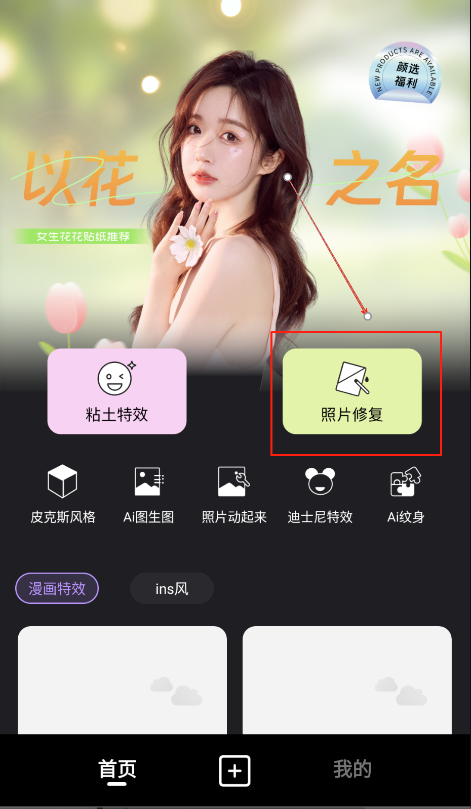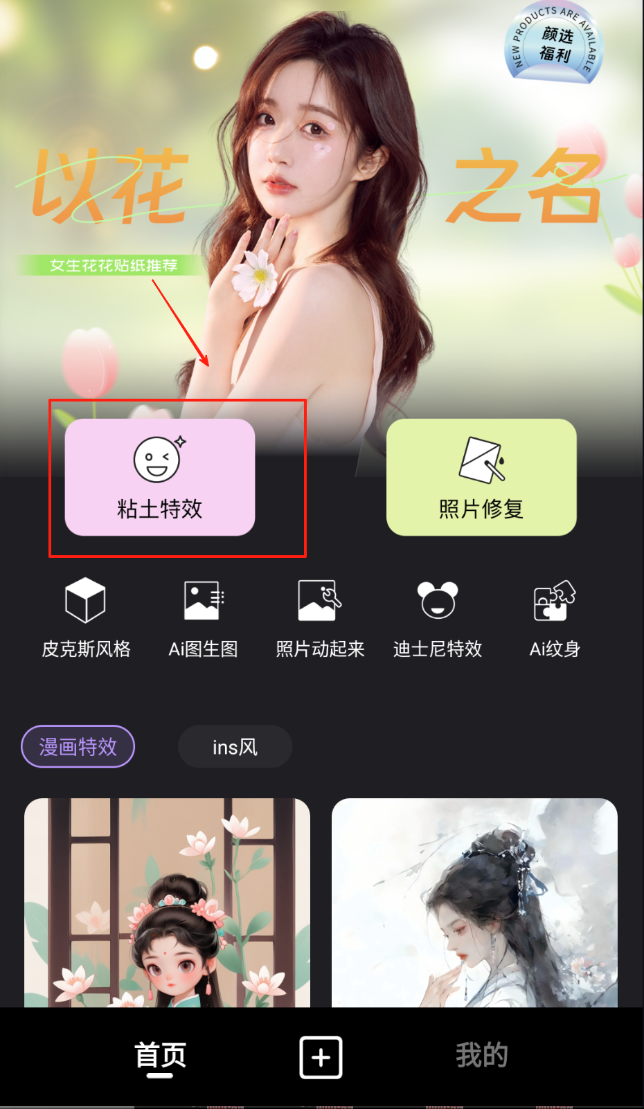 3、进入漫画模式或美妆界面,一键生成二次元形象或添加妆容贴纸。