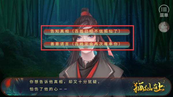 狐仙在上是一款玄幻题材的剧情游戏,以乱世中乡村野丫头探寻身世为主线,融入狐仙羁绊、王朝权谋等元素,玩家将在宿命与爱情交织的故事里,体验有笑有泪的冒险,揭开隐藏在盛世下的真相。