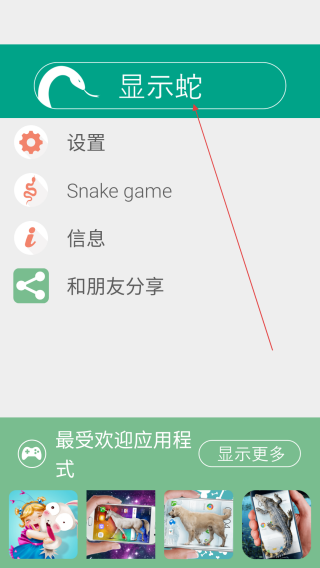 1、打开蛇屏幕恶作剧,点击【显示蛇】。