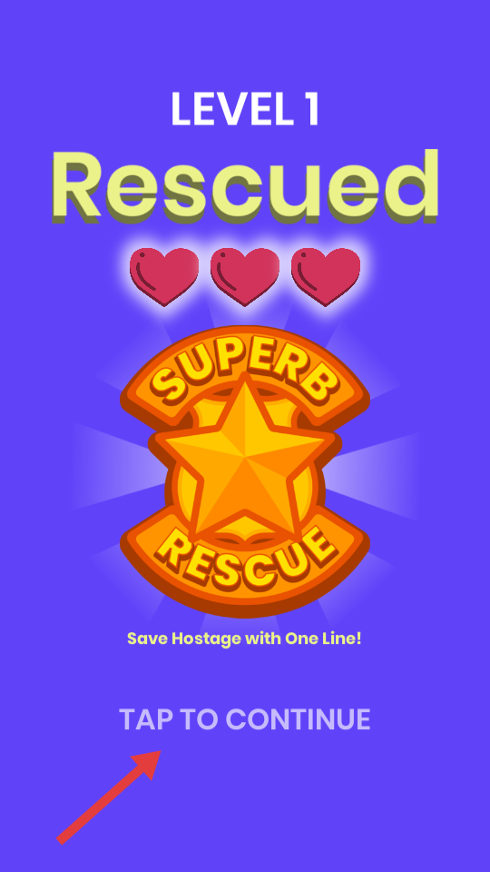3、成功解救被困者后屏幕显示【Rescued】,点击【Taptocontinue】进入下一关,开启更多救援挑战,享受游戏乐趣。