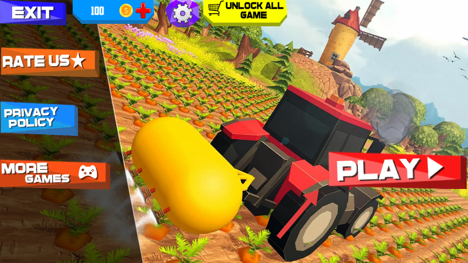 1、点击界面中的【PLAY】按钮开启游戏,体验农田作业乐趣,同时熟悉【EXIT】等功能按钮用途。