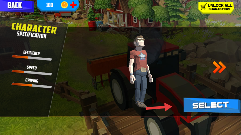3、在角色选择界面查看【CHARACTER-SPECIFICATION】属性,点击【SELECT】选定角色,利用其属性优势进行游戏。