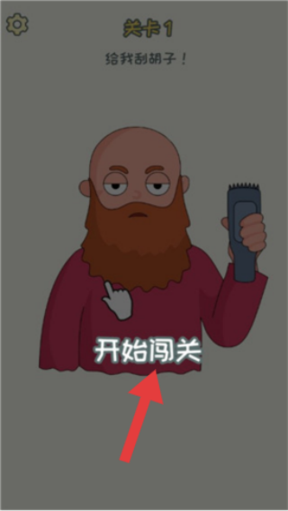 1、在关卡1界面,点击【开始闯关】按钮,开启给人物刮胡子任务。