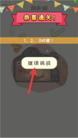 3、关卡15通关后,点击【继续挑战】按钮,进入下一关继续游戏。