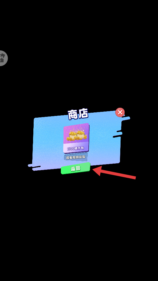 1、进入商店界面,可通过【观看视频获取】1500硬币包,积累初始资源,点击【返回】可退出商店。