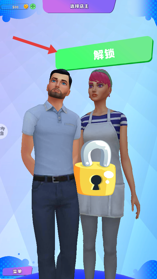 3、选择店主时,留意【解锁】按钮,后续可解锁新店主丰富游戏体验,提升经营乐趣。