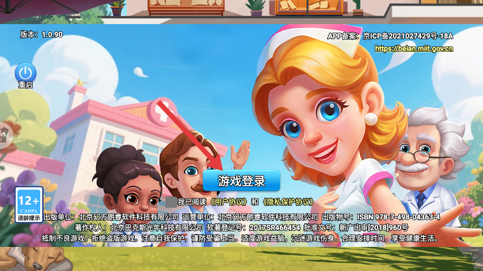 1、进入游戏界面后,点击【游戏登录】按钮,勾选协议完成登录,开启医院经营之旅。