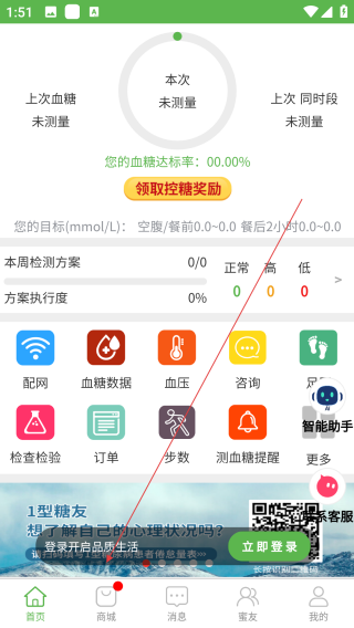3、全场景商城服务:精选血糖仪、试纸、控糖食品等产品,价格优惠且支持蜜豆抵扣,足不出户满足护理需求。