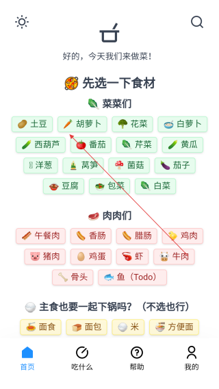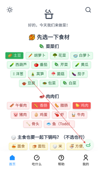 2、操作简单便捷:一键勾选食材即可生成菜谱,视频教学全程引导,无需复杂步骤,新手也能快速上手。