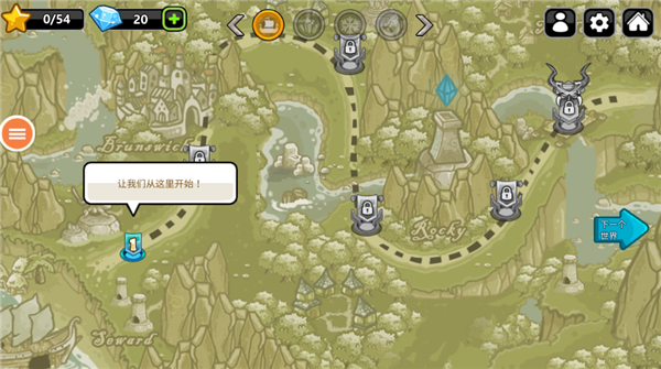 1、进入选择关卡页面,点击第一个开始游戏。
