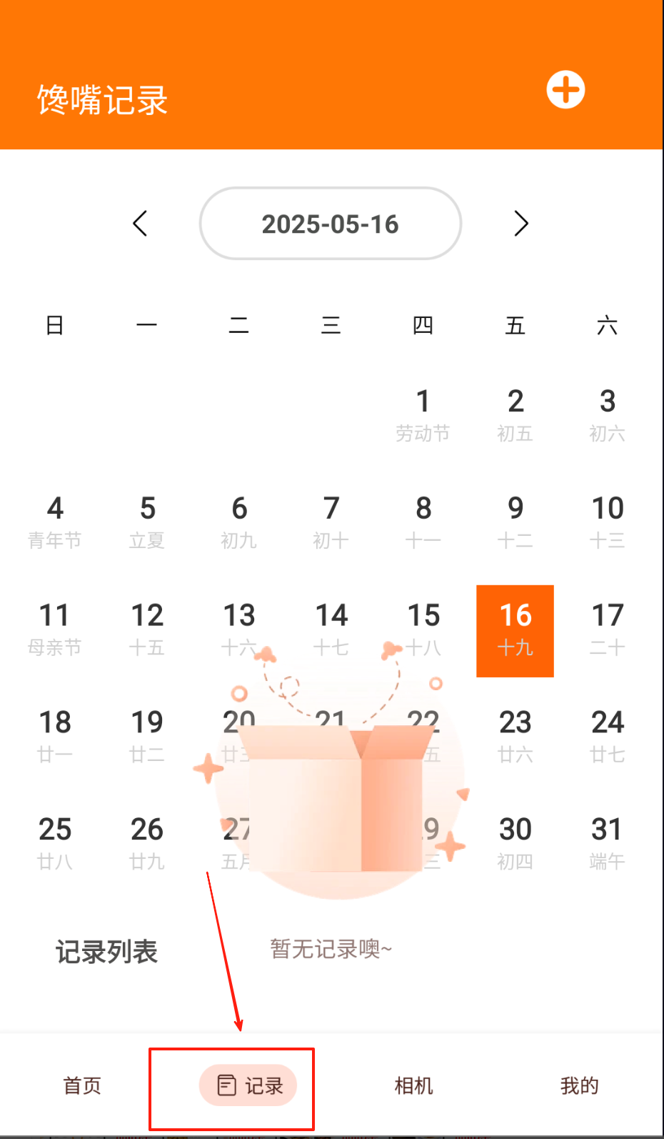 1、点击底部“记录”按钮进入创作界面,选择模板后可以自由添加文字或从相册导入图片,别忘了用滤镜功能美化你的美食作品。