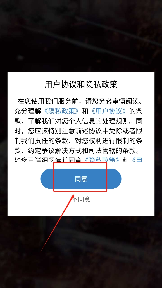 1、在游戏开始前,仔细阅读并点击“同意”按钮,以接受《用户协议》和《隐私政策》。