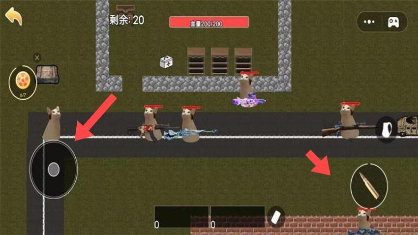 2、通过方向键操控角色移动,利用攻击键消灭敌人,时刻关注【血量】与剩余敌人数量。