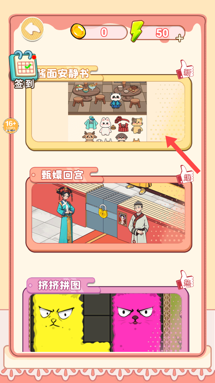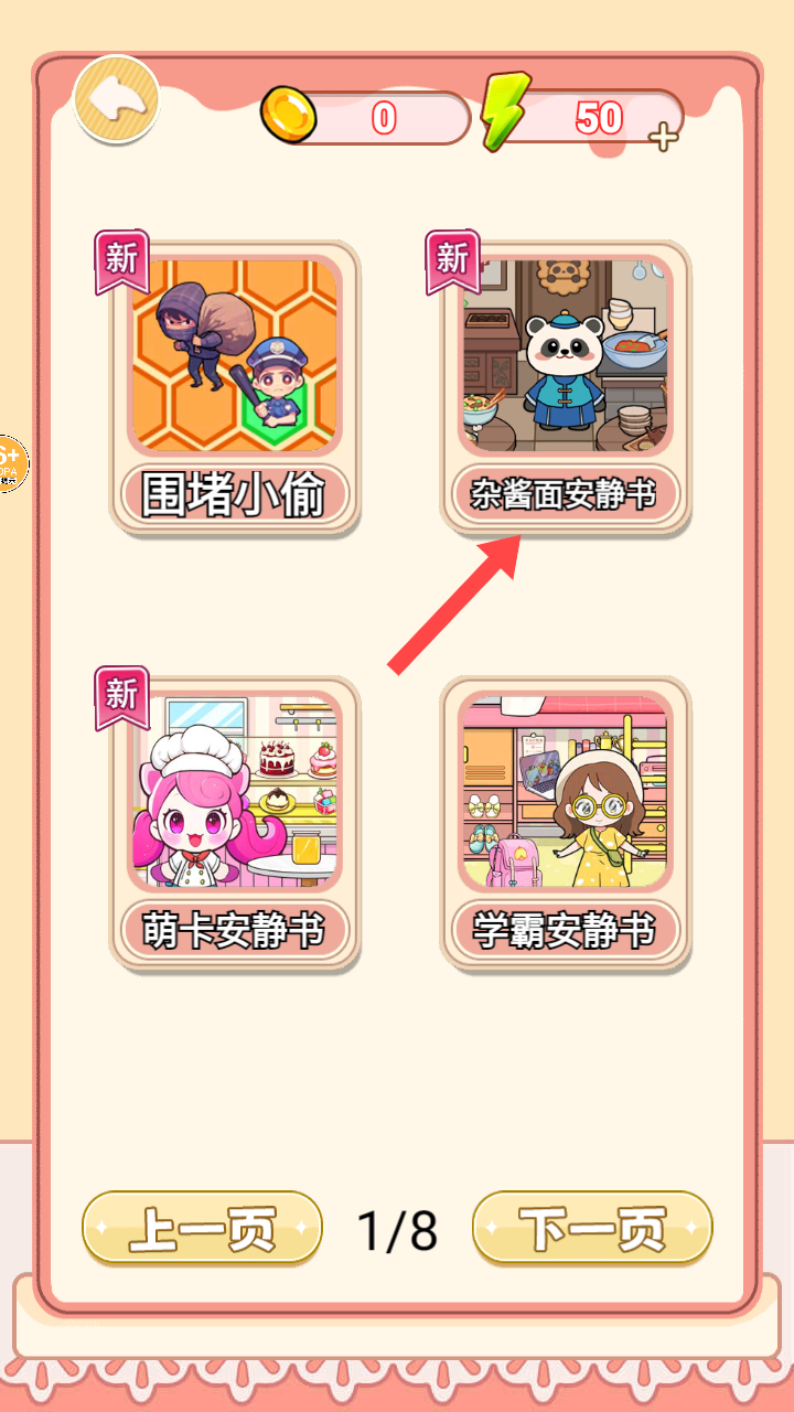 2、在游戏列表中选择【杂酱面安静书】选项,消耗闪电资源开启游戏。