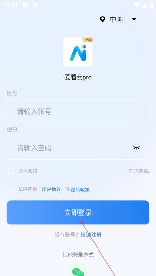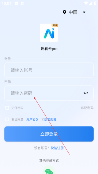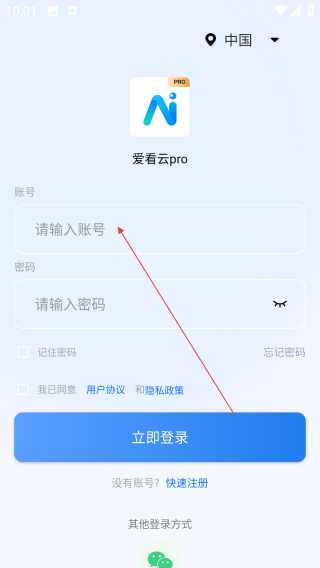1、打开爱看云,点击【请输入账号】。