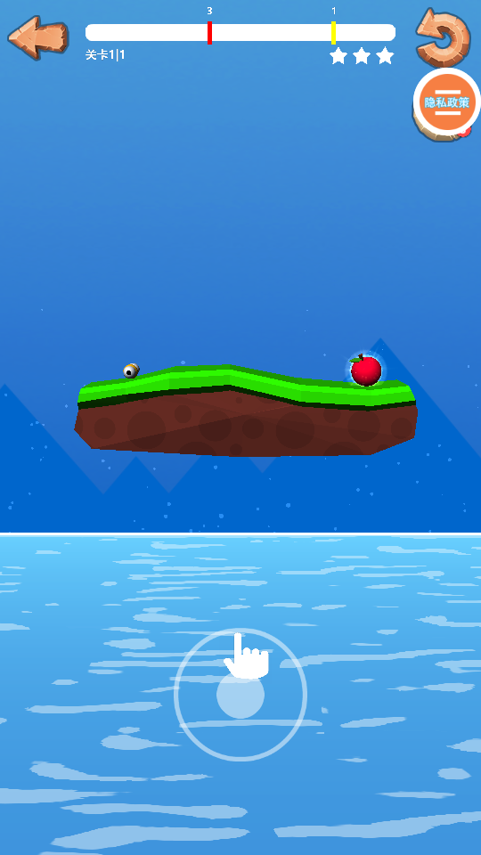 2、在【关卡1-1】中,通过操控使小球滚动,顺利获取苹果完成任务。
