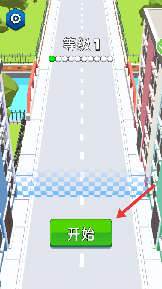 1、进入游戏界面,看到【等级1】及绿色【开始】按钮,点击【开始】按钮,正式开启游戏进程。