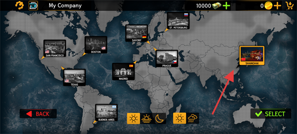 2、选择你想要去的地区,游戏内有各种现实的城内和城外地图。