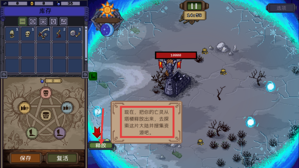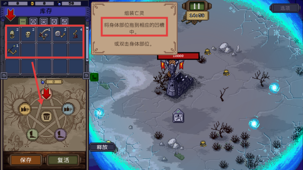 3、组装完成后,点击【释放】,让亡灵从塔楼出发去探索大陆并搜集资源。
