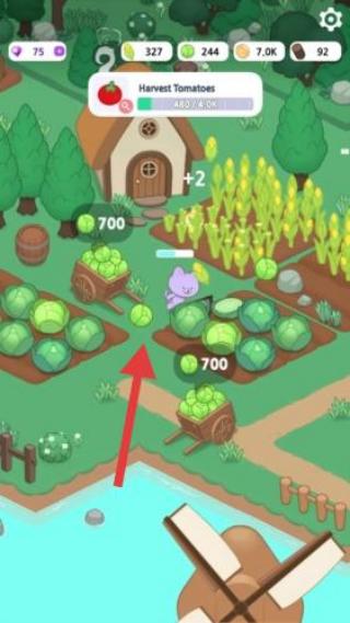 1、在农场游戏界面,按箭头指向操控角色,在蔬菜种植区域进行操作。