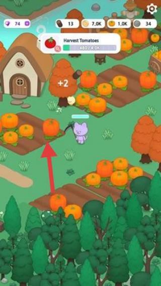 2、操控角色在南瓜种植区域活动,继续进行收获等操作,推进游戏任务。