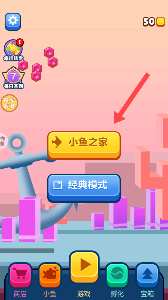 3、选择【经典模式】或【小鱼之家】按钮,进入相应游戏模式,开始游戏体验。