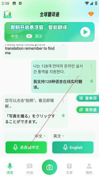 1、实时语音互译:双向语音翻译零延迟,沟通如面对面般流畅,助力跨语言商务谈判与日常交流。