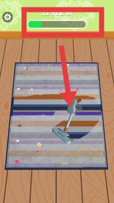2、操作清扫工具清理毛毯,推进【LEVEL】进度条完成关卡。