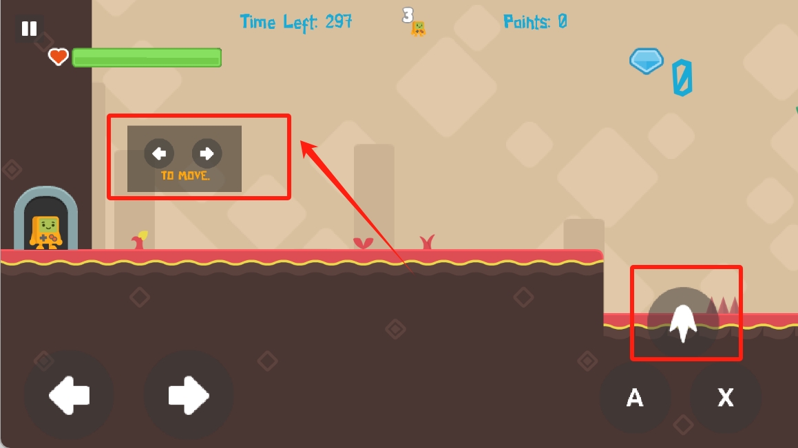 2、掌握移动操作:进入游戏场景后,留意屏幕下方的左右箭头按钮,通过点击它们来操控游戏角色左右移动,灵活穿梭于游戏世界。