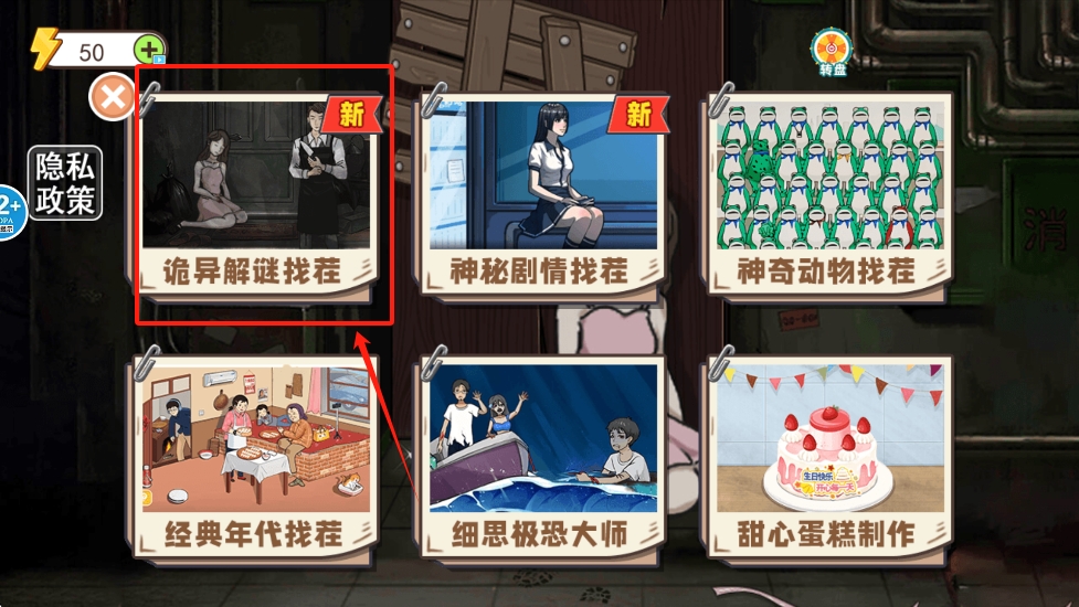 3、然后,在关卡列表中选择一个关卡,例如“诡异解谜找茬”,开始你的游戏挑战。