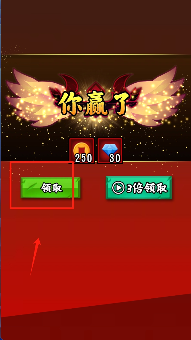 4、战斗胜利后,点击“领取”按钮获取奖励。领取奖励是游戏的重要环节,可以获得金币和钻石等资源。