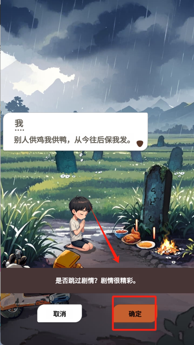 1、点击“确定”按钮跳过剧情,在剧情界面,点击“确定”按钮可以快速跳过剧情,进入游戏主界面。