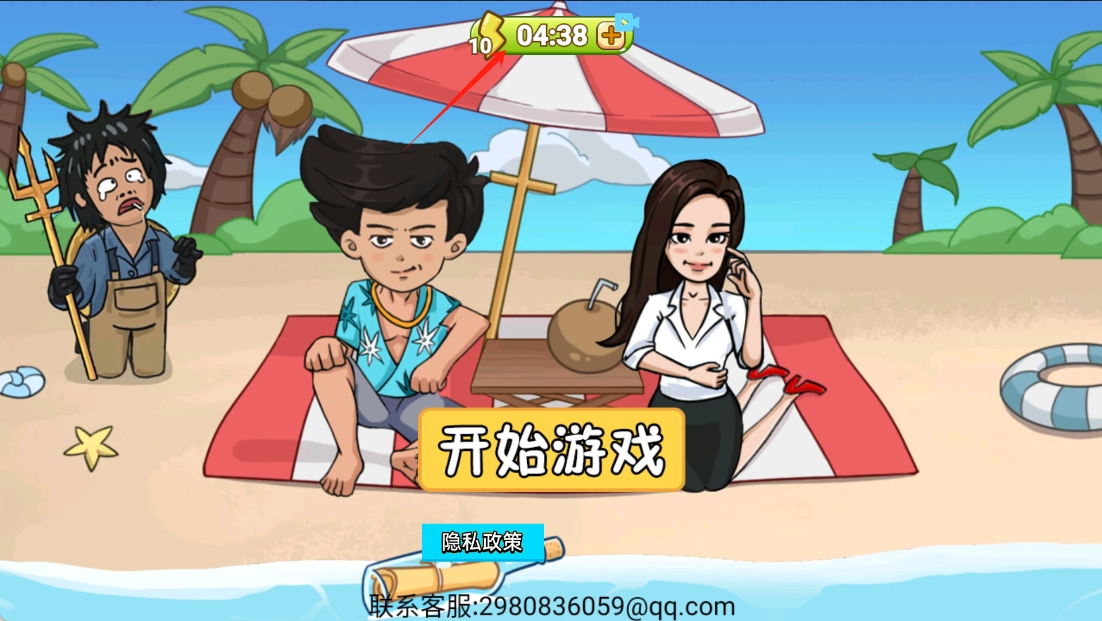 1、点击开始游戏进入游戏。在游戏主界面,点击开始游戏按钮,进入游戏,开始海滩冒险之旅。