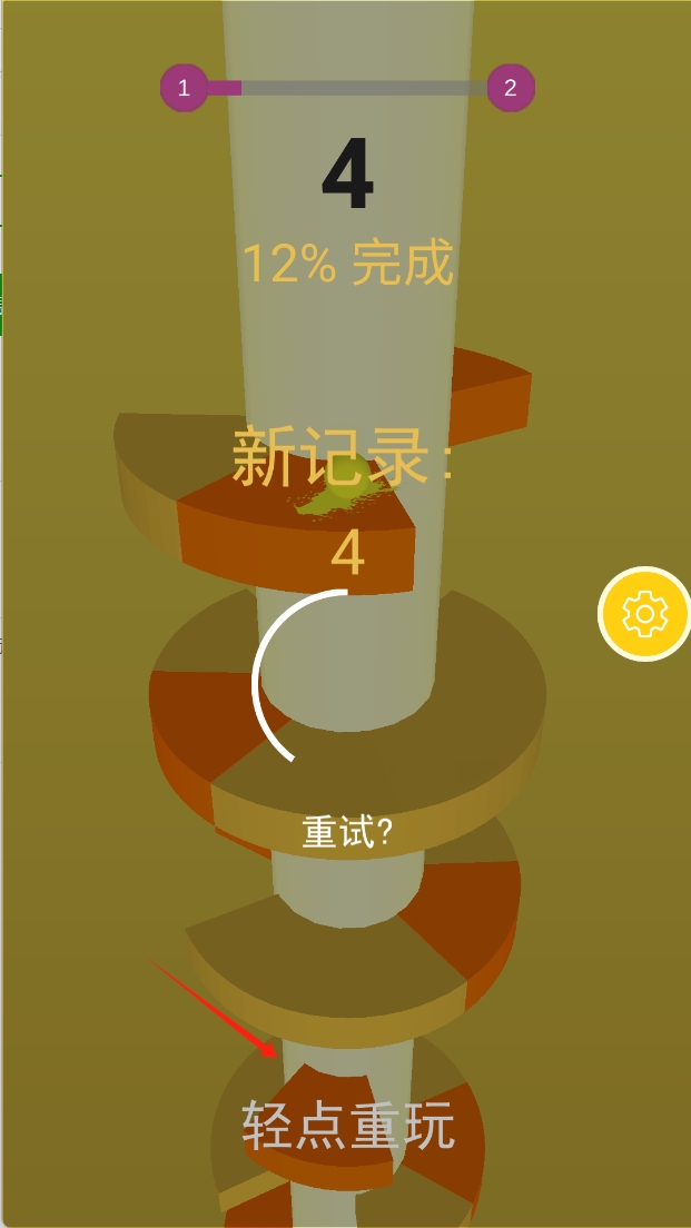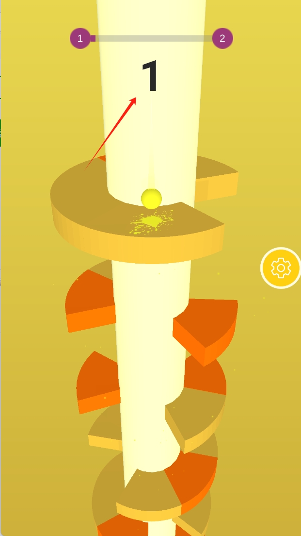 1、通过点击屏幕使小球跳跃,避开障碍物,成功落在下一个平台上,继续前进。