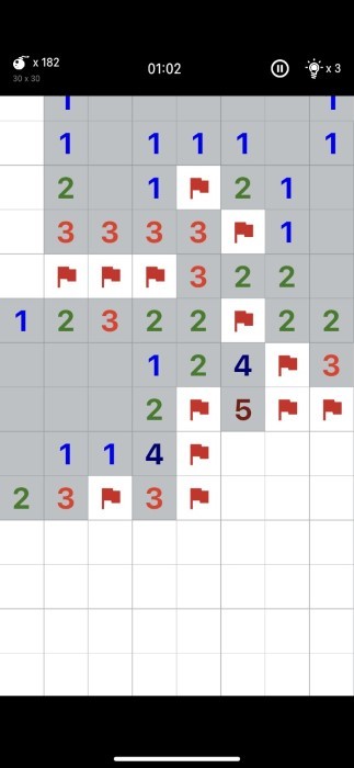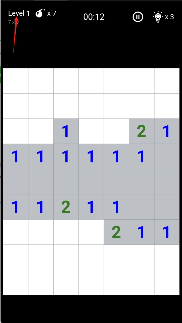 2、观察数字提示,判断周围地雷分布,点击安全格子,逐步揭开游戏区域。