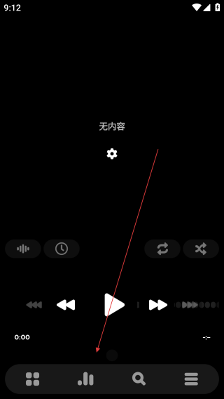 1、打开Poweramp音乐播放器,点击【箭头指向】。