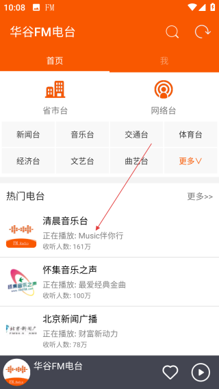 1、打开华谷FM电台,点击【喜欢的电台】。